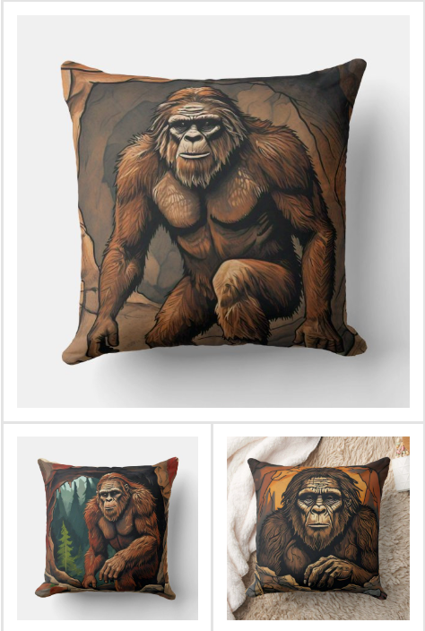 Bold and detailed designs of Bigfoot set against a rocky, earthy backdrop.