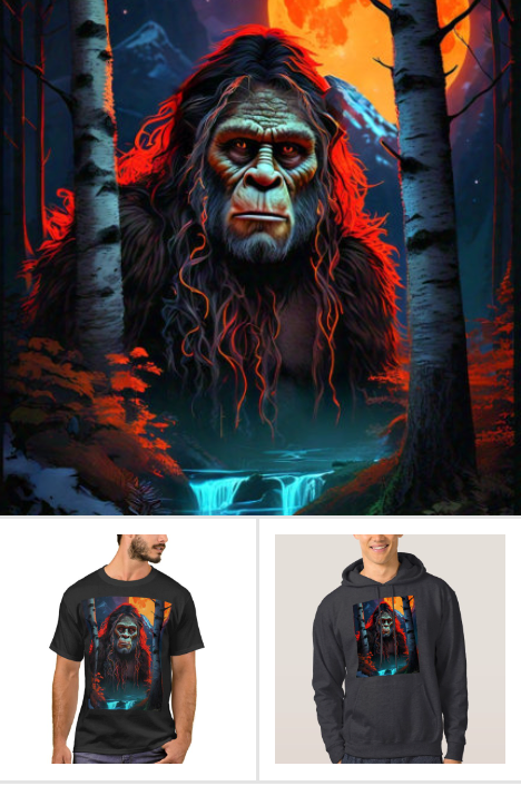Step into the eerie beauty of the wilderness with this stunning Bigfoot design, featuring a legendary Sasquatch illuminated by the glow of the full moon. Set in a deep forest with cascading waterfalls and glowing ember-like details, this artwork captures the mystery of the elusive cryptid on the hunt. Perfect for lovers of folklore, cryptozoology, and the great outdoors, this design brings an atmospheric blend of legend and nature to life. Whether you’re a Bigfoot believer, an adventurer, or just love unique fantasy artwork, this collection is a must-have for t-shirts, hoodies, and wall art!”